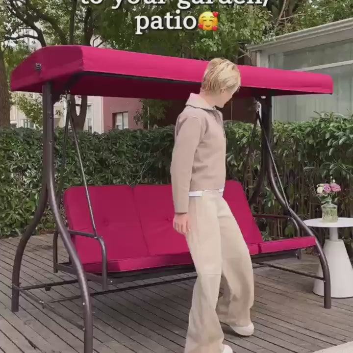 Unwind in comfort with our 3 Seater Patio Hammock Chair, designed to accommodate up to three people effortlessly. Whether you're entertaining friends or enjoying a quiet moment with family, the wide seat and high-resilience cotton cushion offer cloud-like softness for extended lounging. The adjustable backrest easily converts the seat into a relaxing porch swing bed — perfect for lazy afternoons or starlit evenings.