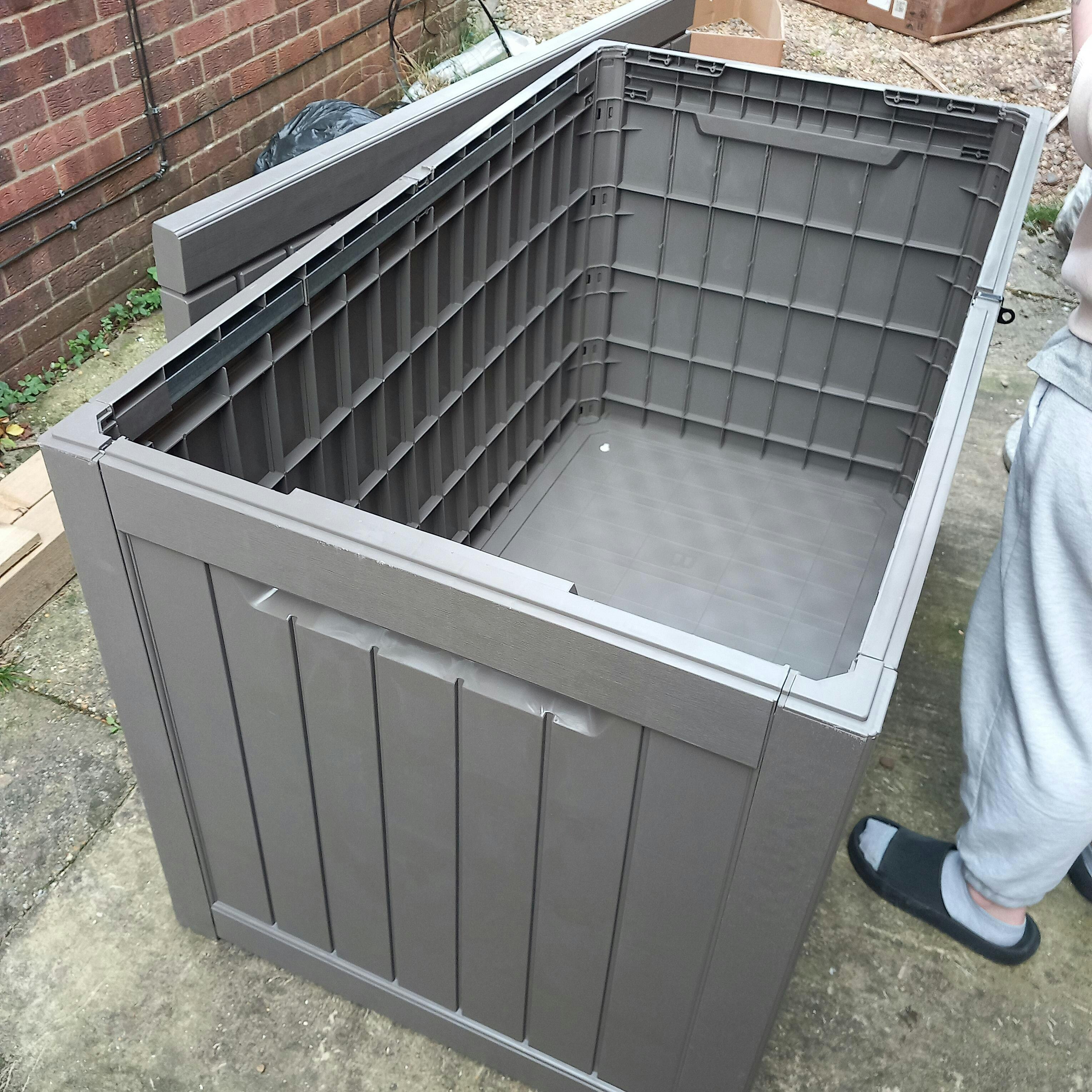 Absolutely over the moon, very quick delivery before Christmas. It stores alot more than I anticipated, fits nicely into my garden and was quite easy to assemble. Highly recommend.