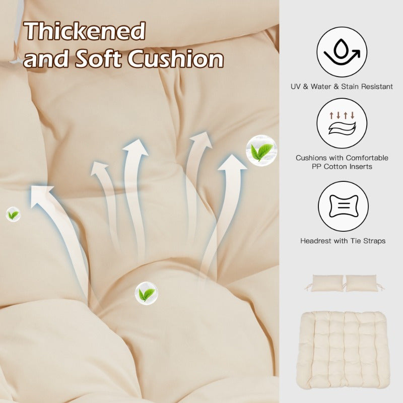 Transform your patio, lounge, or bedroom into a cozy retreat with this stylish and functional Double Hanging Egg Chair. Designed for ultimate comfort and built for long-lasting use, it’s the perfect spot for reading, napping, or simply unwinding in the fresh air or indoors.