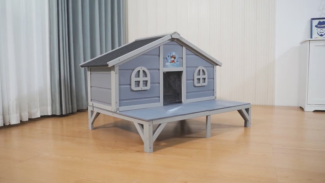 Built with generous dimensions, this large wooden outdoor cat house offers a 4.74 ft² enclosed interior capable of supporting up to 110 lbs, making it suitable for 1–3 cats, puppies, rabbits, or similar small animals. In addition to the interior space, the 3.77 ft² open lounging deck gives pets a comfortable area to relax, eat, interact, or soak up the sun. This dual-space design promotes both safety and enrichment, allowing animals to feel protected without being confined.