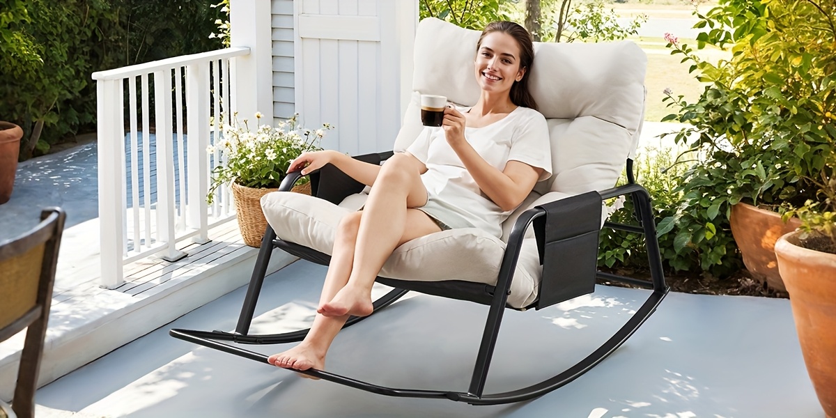 Crafted from durable, high-quality fabric, the cushion maintains its vibrant color and plush feel—even after extended use in the sun. This rocking chair outdoor is built to withstand outdoor elements, making it a reliable, stylish addition to your space year-round.
