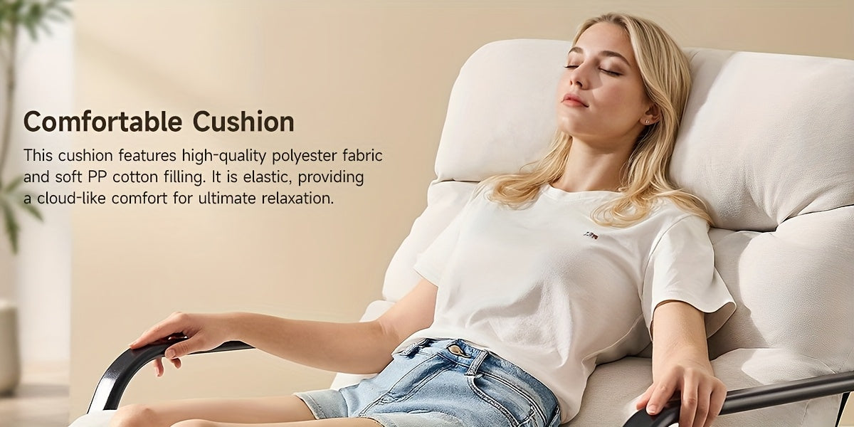 The generously padded 5.5-inch seat cushion provides exceptional support, helping reduce pressure on your back and hips during prolonged sitting. The rear side of the cushion is designed with a non-slip surface to ensure stability and safety, so you can enjoy rocking in peace.