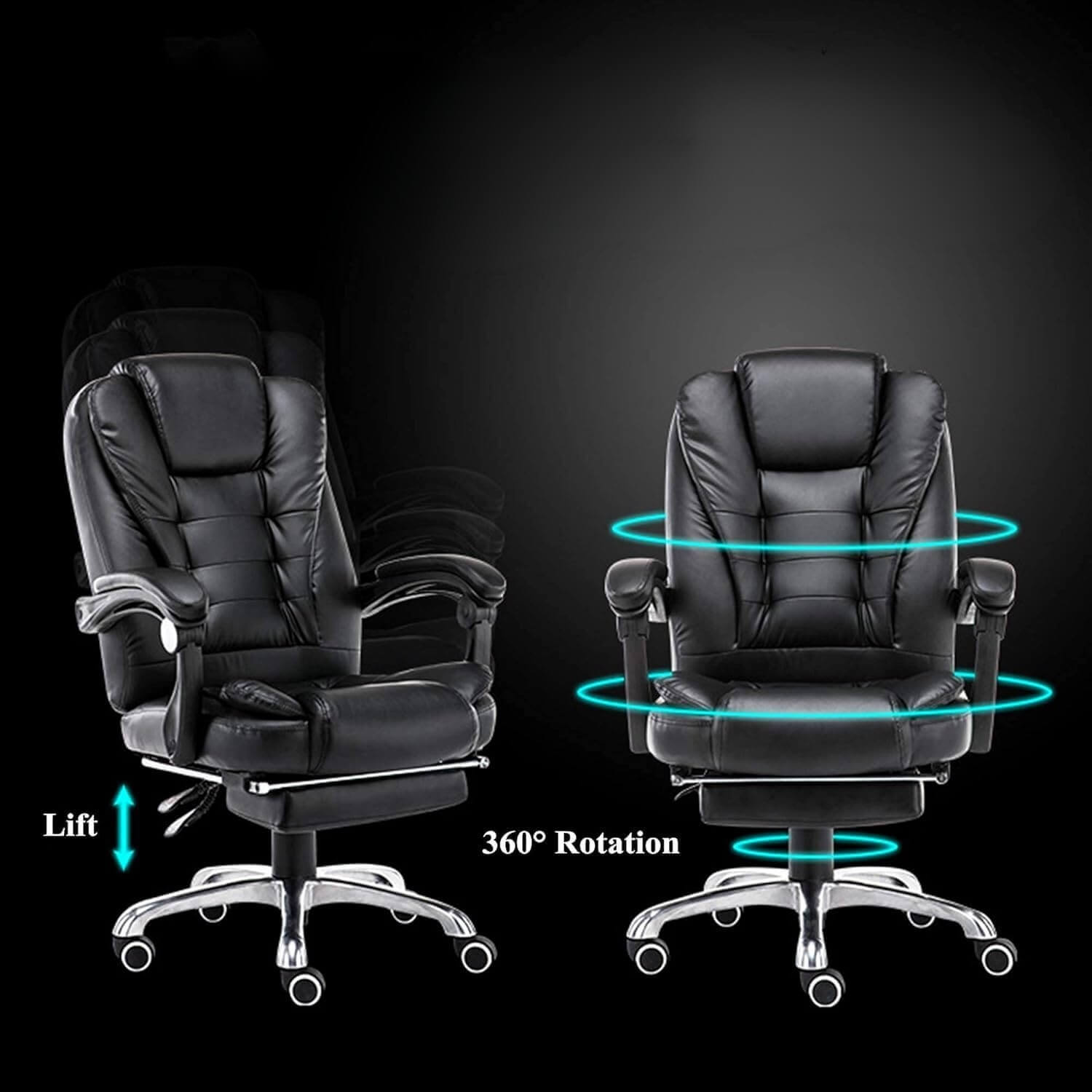 The Boston Reclining Office Chair with Footrest combines luxury, comfort, and ergonomic support, making it perfect for offices, home workspaces, and professional settings. Crafted from premium leather with a sturdy construction, it offers durability and a smooth texture. Designed for customized comfort, it features adjustable height, a 95° to 150° recline function, and a built-in footrest for relaxation. Available in multiple styles, materials, and colors, including steel, nylon, or aluminum alloy feet, as well as armchair and plaid versions, this chair ensures versatility. The wide, spacious seat enhances comfort, while the adjustable vibration massage, 360-degree rotation, and retractable footrest provide the ultimate relaxation experience. With its sleek design and stylish color choices, it effortlessly elevates any workspace.