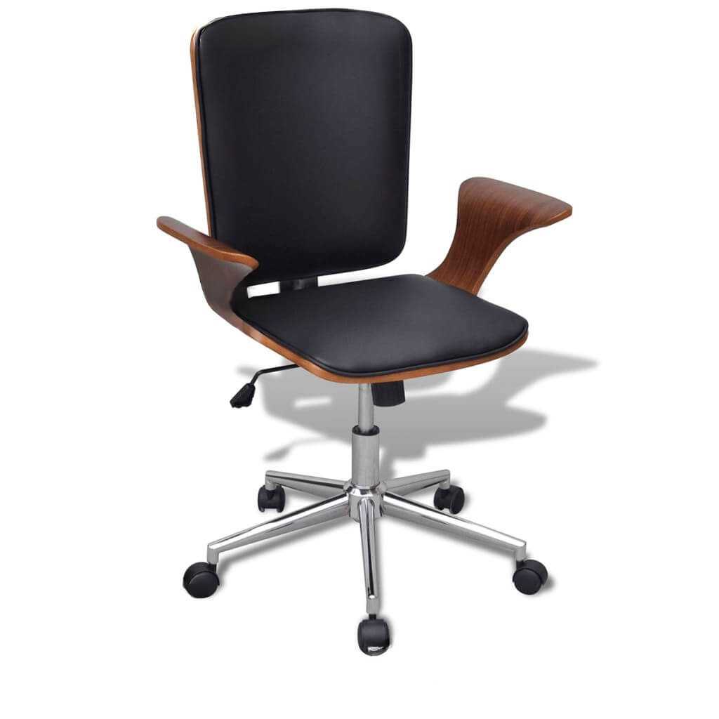 Crafted with a stunning bentwood frame in walnut finish, this swiveling office chair exudes a timeless appeal, complemented by a chrome-plated iron base for enhanced stability and durability. The sleek combination of wood, leather, and chrome creates a contemporary look that seamlessly blends with any modern or classic décor.